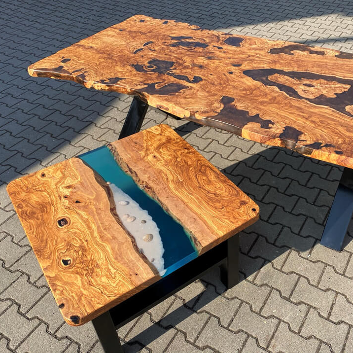 Entdecken Sie unsere einzigartigen Möbel aus Olivenholz — jedes Stück ein Unikat mit einzigartiger Maserung und warmem Charakter.